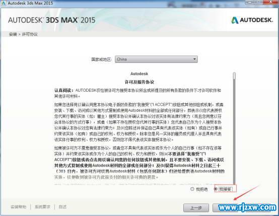 第4步、国家或地区选China,协议点击接受,再点击下一步。
