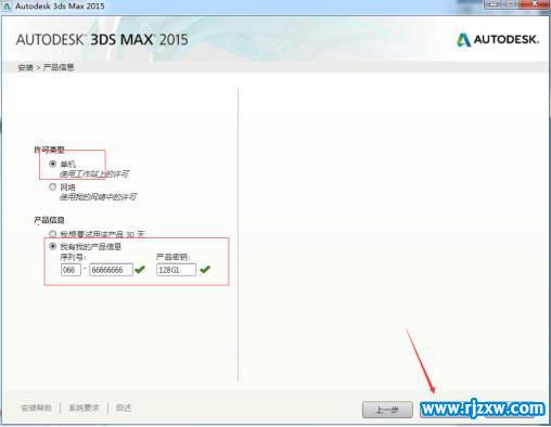 第5步、许可类型选单机。产品信息的序列号:666-69696969,产品密钥为128G1,点击下一步。