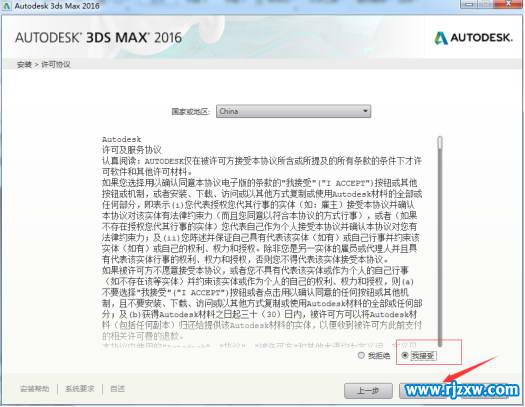 第3步、选国家或地区为China,协议设置我接受,然后点击下一步。