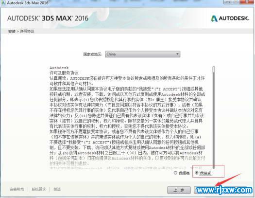 第3步、选国家或地区为China,协议设置我接受,然后点击下一步。