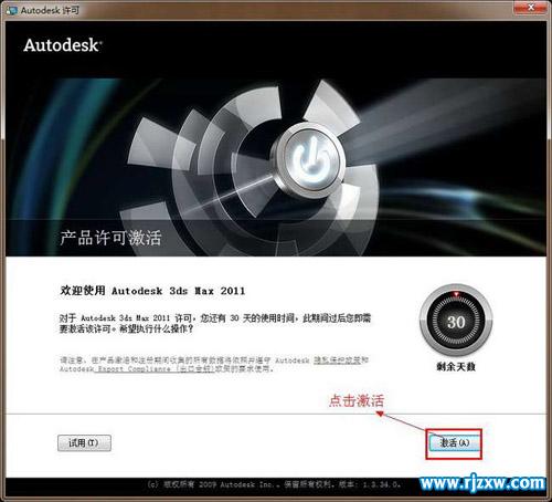 第4步、再一次打开3dmax2011 64位软件。点击激活就可以了。