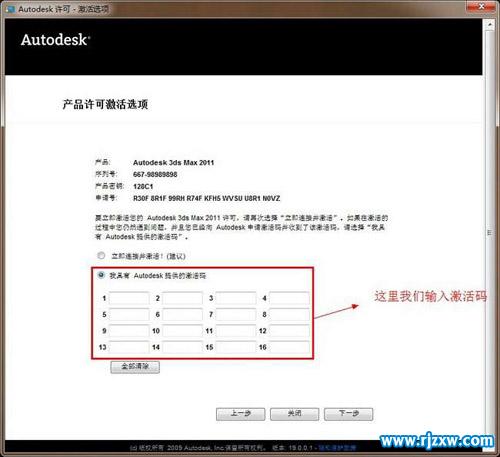 第10步、得到的激活码复制到注册页面中去。然后点击下一步。