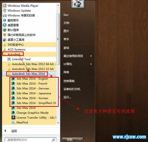 14、在开始菜单,3DMAX软件里面找到中文版打开。