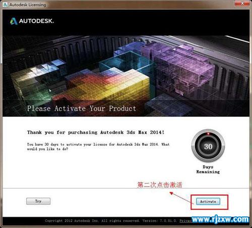 软件简介:3dmax2014激活教程:1、使用安装序列号为:666-69696969,产品密钥:128F1 ,安装 3DMax2014。 2、打开 3Ds Max2014 点击右下角的“激活”按钮;在出现的对话框中点击关闭。 3、重新打开3DMax ,再次点击激活按钮,选择“我具有Autodesk提供的激活码”。 4、打开注册机xf-3dsmax_x64点击 “Patch”后点击“Generate”。 5、将算出的数字使用快捷键粘贴到第四步中的输入框中完成激活。 3dmax2014 64位注册机使用方法:1、打开刚安装好的3DsMax2014 64位软件。