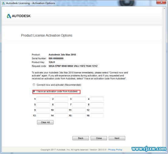 软件简介:3dmax2018 64位注册机使用方法:1、安装完毕后,打开3dmax2018(建议断网)。 2、弹出界面点击Enter a Serial Number。 3、点击Acitvate激活。 4、输入序列号066-066666666,输入密钥128J1。 5、以管理员身份打开3dmax2018注册机,点击Patch。 6、将申请码复制到注册机的第一项中,点击Generate,生成激活码。 7、将生成的激活码复制到入内,点击NEXT下一步。 8、3ds Max2018破解版安装完成。 3dmax2018 64位激活教程:1、打开刚安装的3dmax2018 64位软件,点击激活。