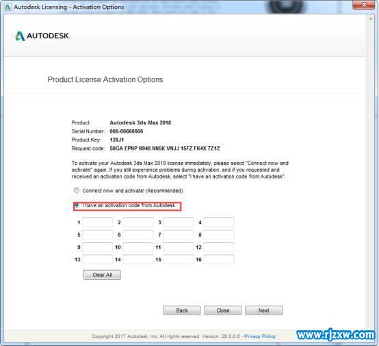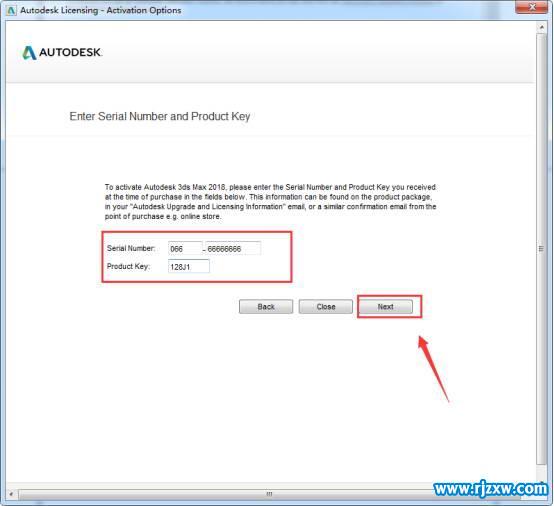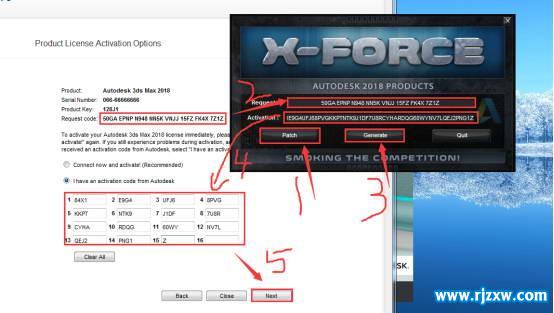 软件简介:3dmax2018 32位注册机使用方法:1、安装完毕后,打开3dmax2018(建议断网)。 2、弹出界面点击Enter a Serial Number。 3、点击Acitvate激活。 4、输入序列号066-066666666,输入密钥128J1。 5、以管理员身份打开3dmax2018注册机,此教程由软件自学网首发,点击Patch。 6、将申请码复制到注册机的第一项中,点击Generate,生成激活码。 7、将生成的激活码复制到入内,点击NEXT下一步。 8、3ds Max2018破解版安装完成。 3dmax2018 32位激活教程:1、打开刚安装的3dmax2018 32位软件,点击激活。