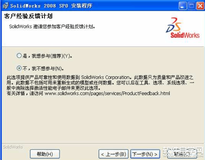 第2步、进入欢迎使用solidworks2008 SPO安装向导。点击下一步。
