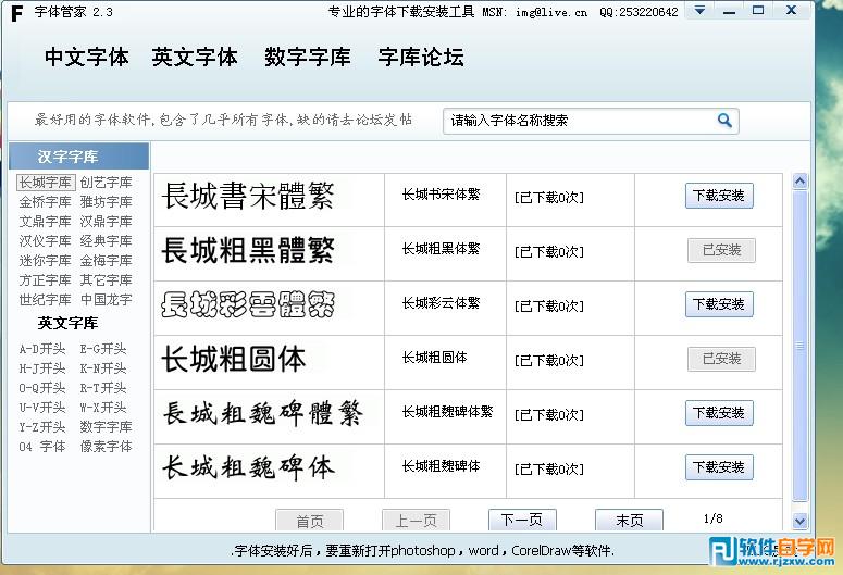 免费字体下载管理软件有软件自学网提供,可以免费下载自动安装字体,让你不在为字体而烦。软件自学网测试通过,可以放心使用,无病毒。 |