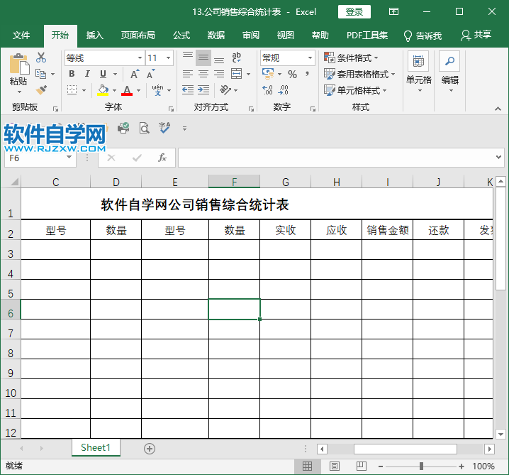 | 软件简介: 公司销售综合统计表excel模版下载,由软件自学网免费提供,可以放心下载使用,要用WPS2019与excel2019打开即可!